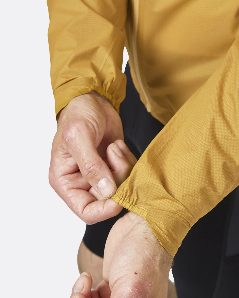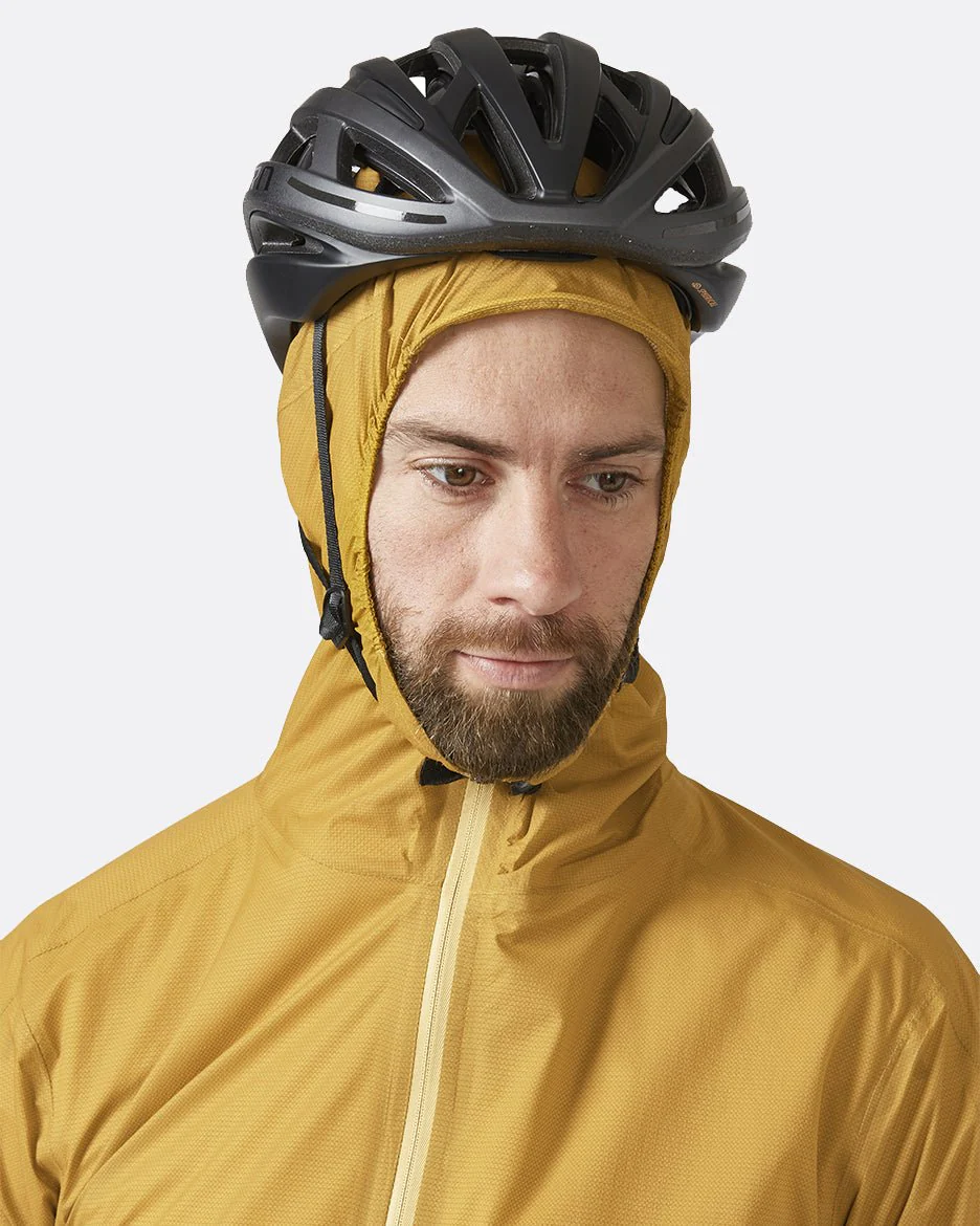 La capucha debajo del casco con visera rígida y cierre elástico en la cara te mantendrá seco y pedaleando bajo un aguacero, y se puede quitar cuando sale el sol. Los puños extendidos con ribete elástico protegen tus manos en paseos expuestos. Cuando ya no la necesite, puede guardar la chaqueta en su bolsa de material liviano y fijarla directamente al cuadro de su bicicleta con el accesorio de cordón elástico.
