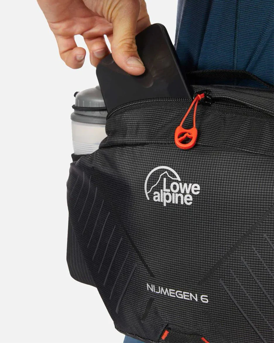 La capacidad de 6 litros significa que hay espacio para todo lo que necesita durante un día de caminata, incluidas las botellas gemelas integradas, por lo que la hidratación está siempre a mano. Un bolsillo trasero de seguridad con cremallera mantiene los objetos de valor seguros y los bolsillos con cremallera en el cinturón de la cadera brindan un fácil acceso a lo esencial en movimiento. Todos estos se mantienen estables mediante un ajuste del cinturón de cadera de tracción hacia adelante y un escudo de compresión integrado. Una forma precurvada proporciona un ajuste mejorado, mientras que el panel trasero acolchado de malla de aire y las aletas de la cadera distribuyen el peso para un transporte más cómodo.